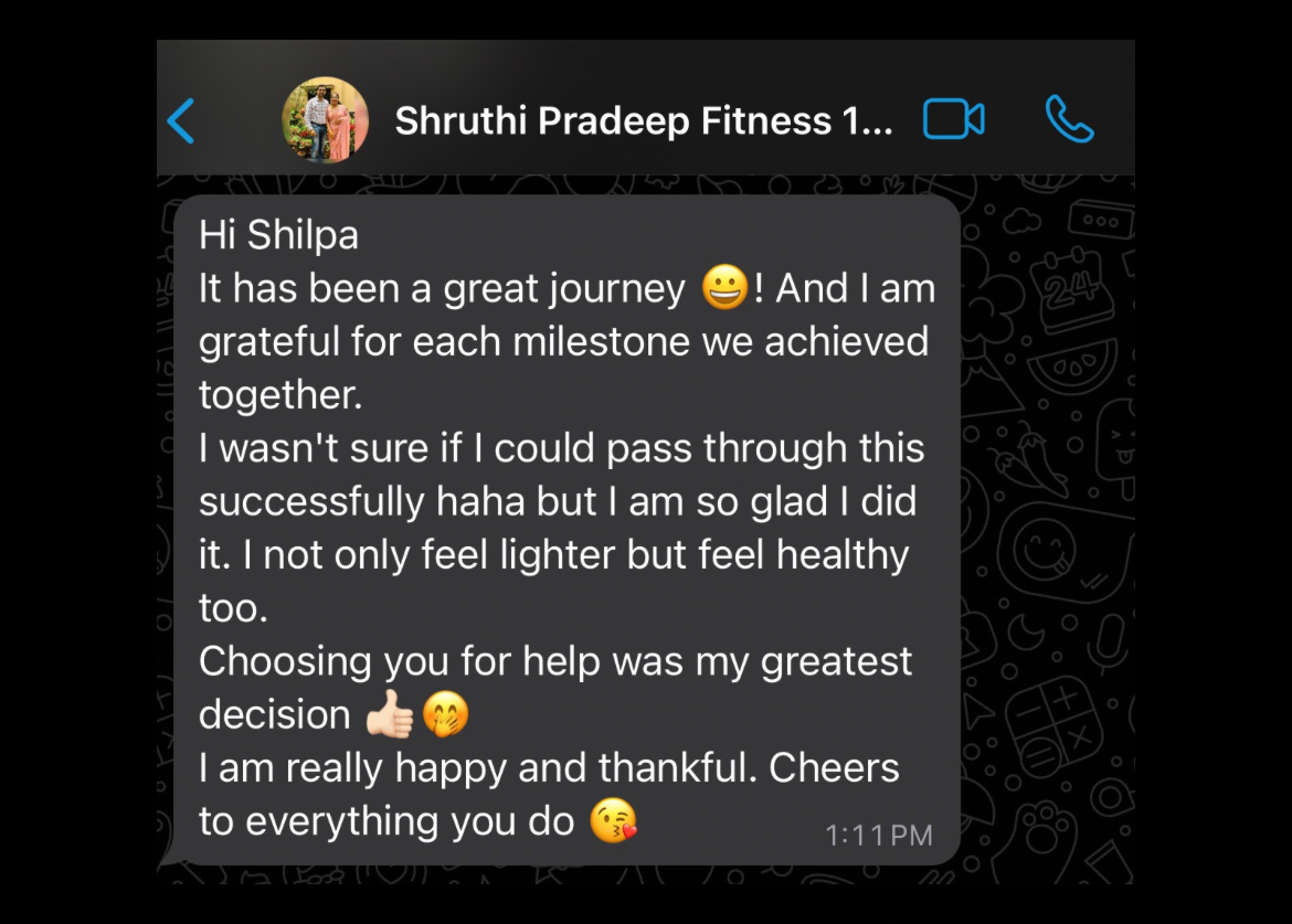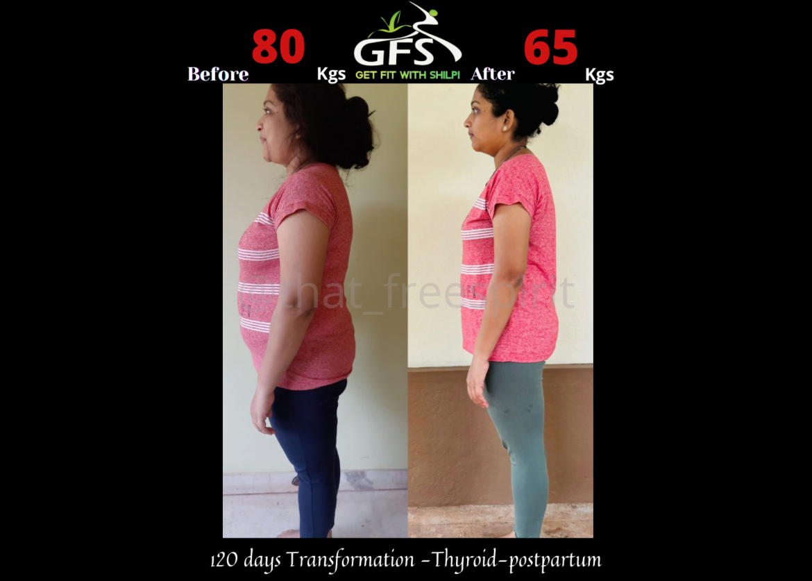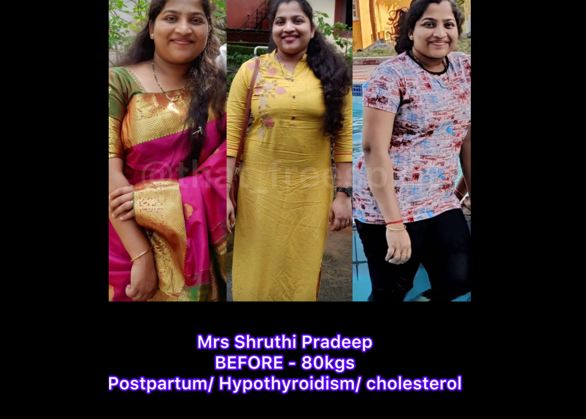are made is Mrs Shruthi ( From Mangalore- 30 years Young) who not just reversed her Hypothyroidism in 120 days by loosing 15kgs of BODY FAT but also was able to get rid of Postpartum Belly .